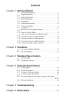 Contents Chapter 1 Getting Started 1.1 Important Safeguards..........................................................1 1.2 Regulatory Notice................................................................2 1.3 Package Contents...............................................................3 1.4 Before Installation................................................................4 1.5 Unpacking...........................................................................4 1.6 Optional Accessories..................