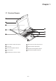 Chapter 1 1.7 Structure Diagram 1 2 3 6 4 7 8 5 9 1 Carry handle to release the 2-pt lock 6 Micro switch for screen auto power off 2 2-point lock 7 Membrane switch (KVM option) 3 LCD interchangeable module kit 8 Keyboard interchangeable module kit 4 LCD membrane 9 Mouse interchangeable module kit 5 Adjustable rear mounting L-bracket P.