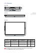 < 3.2 > Options : Touchscreen & driver 17” / 19" U SB Touchscreen Speci fication 17’ M odel 19” TRB 17” e-Resistive TCB 19” e-Capacitive Technology 5-W ire Resistiv e Capacitive Touch Point Single Single Stylus or Finger Finger = 50g / Stylus=R0.8 = 50g 35 million touches 300 million touches 15 ms 20 ms 80% ± 3% 93% ±2% 3H 9H 8% ± 3% 7% M ethod Activation Force Durability Response Time Optical Transmittance Surface Hardness Haze Glass 1.4 ±0.