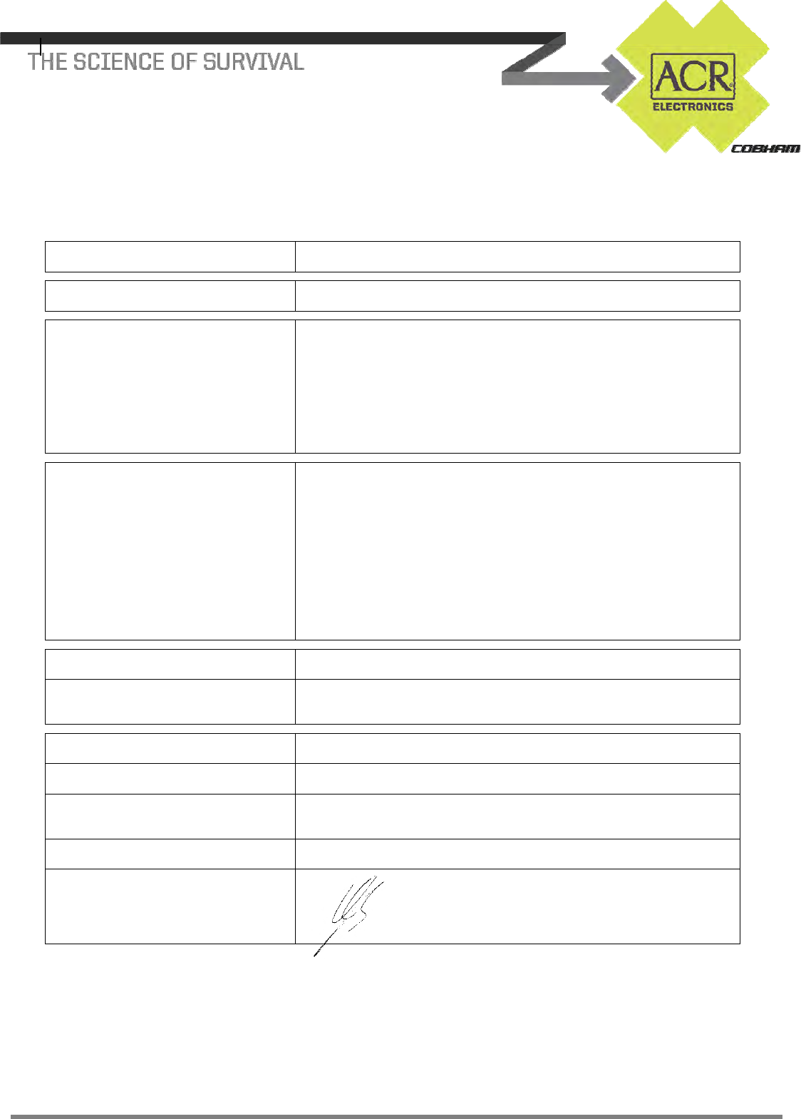 ACR Electronics Europe GmbH maintains a Quality Management System according to ISO 9001:2000, and received ISO certification in July 2003.