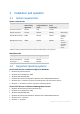 3 Installation and operation 3.1 System requirements System requirements Component Memory (above the OS and running applications) Disk space required during installation or update Disk space occupied Additional by the component(s) Complete installation 300 MB 2 GB 1.