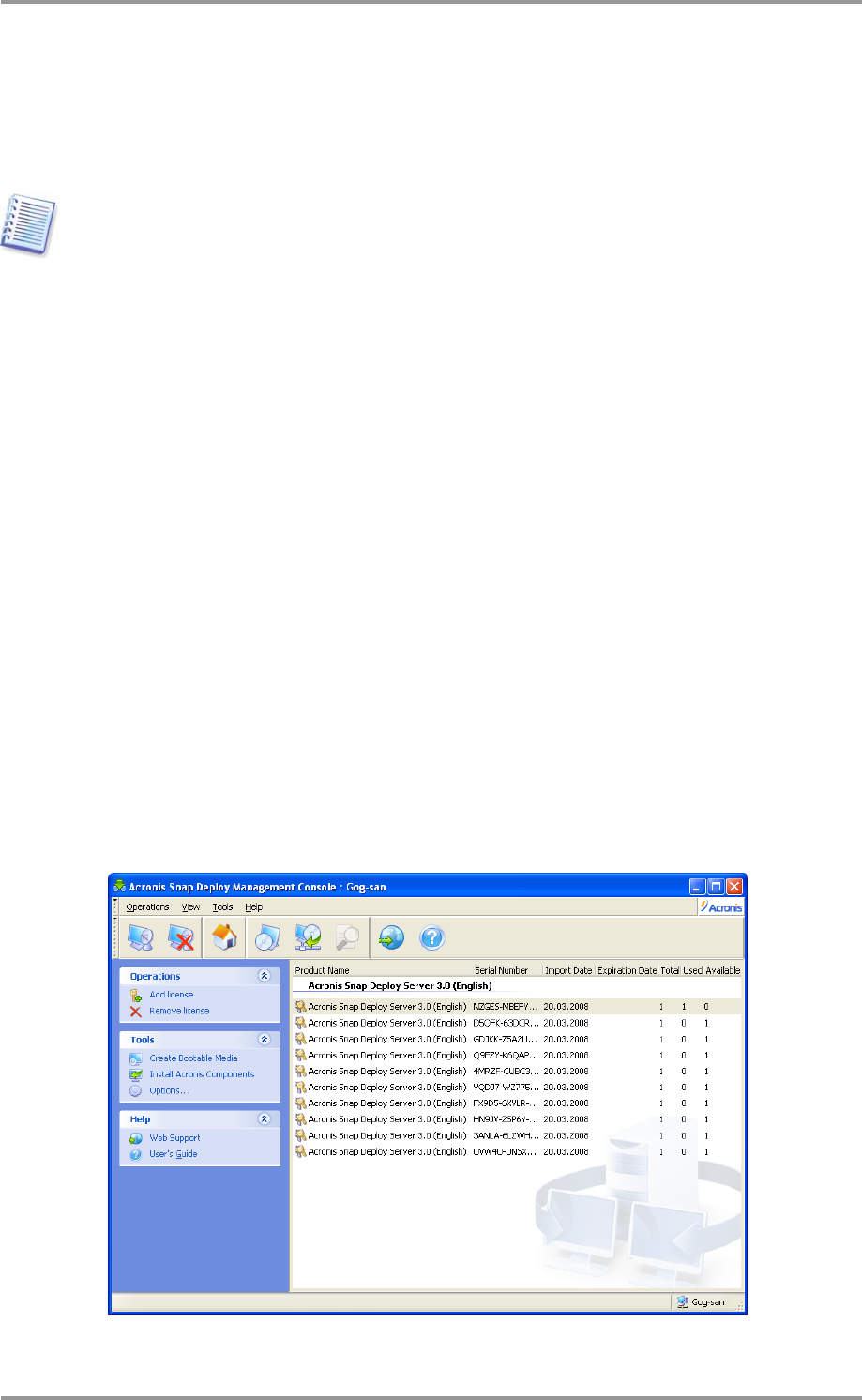 GUI. Alternatively, you can control Acronis License Server using Acronis Snap Deploy Management