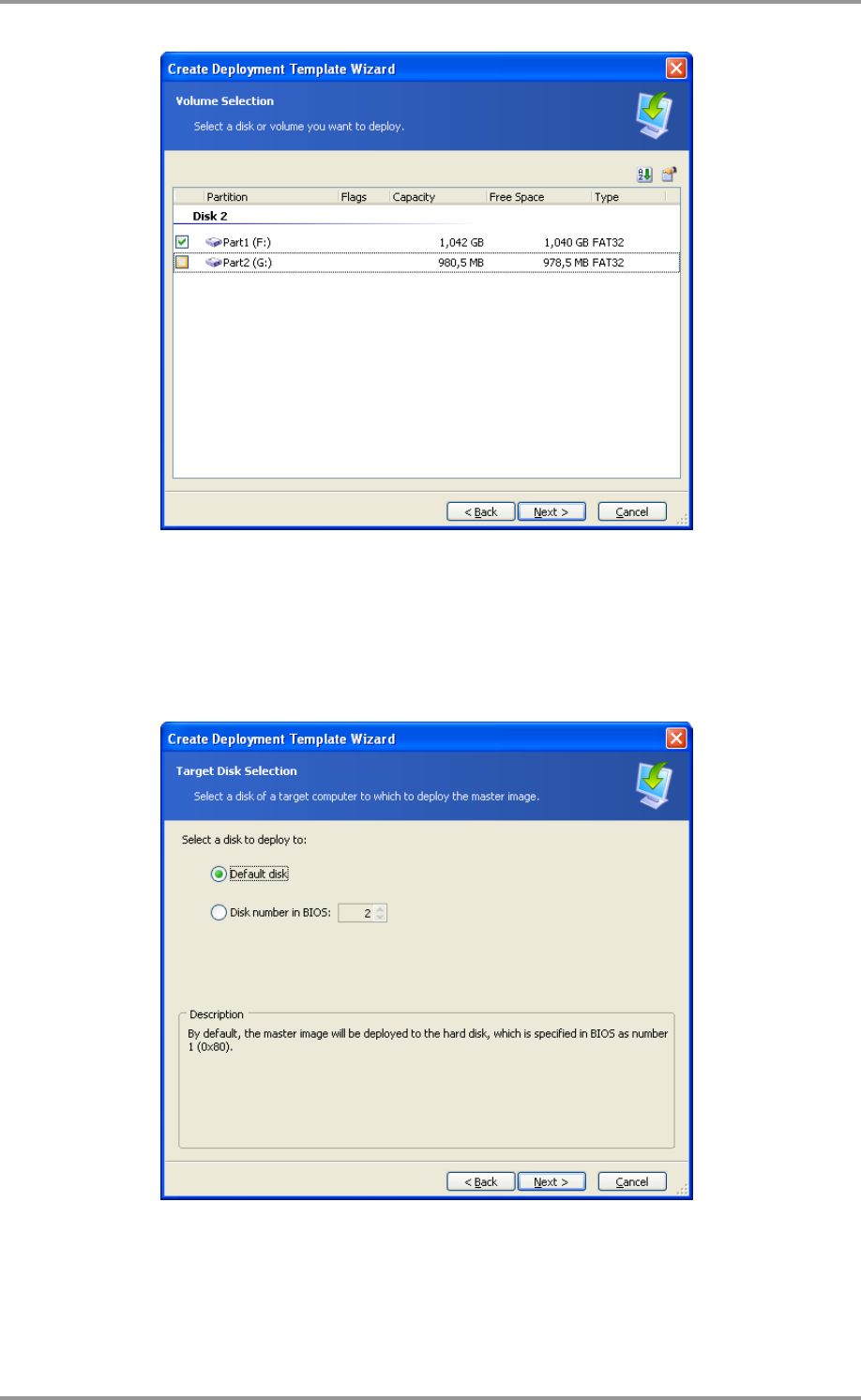 partition image will be deployed to partition 1 of the selected hard disk. To deploy a single partition to