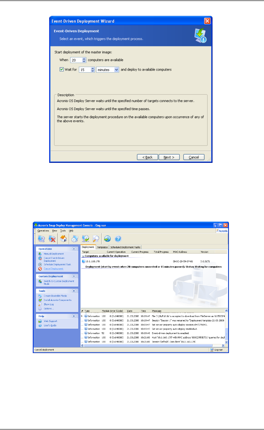 Acronis OS Deploy Server is waiting for targets to connect to start event-driven