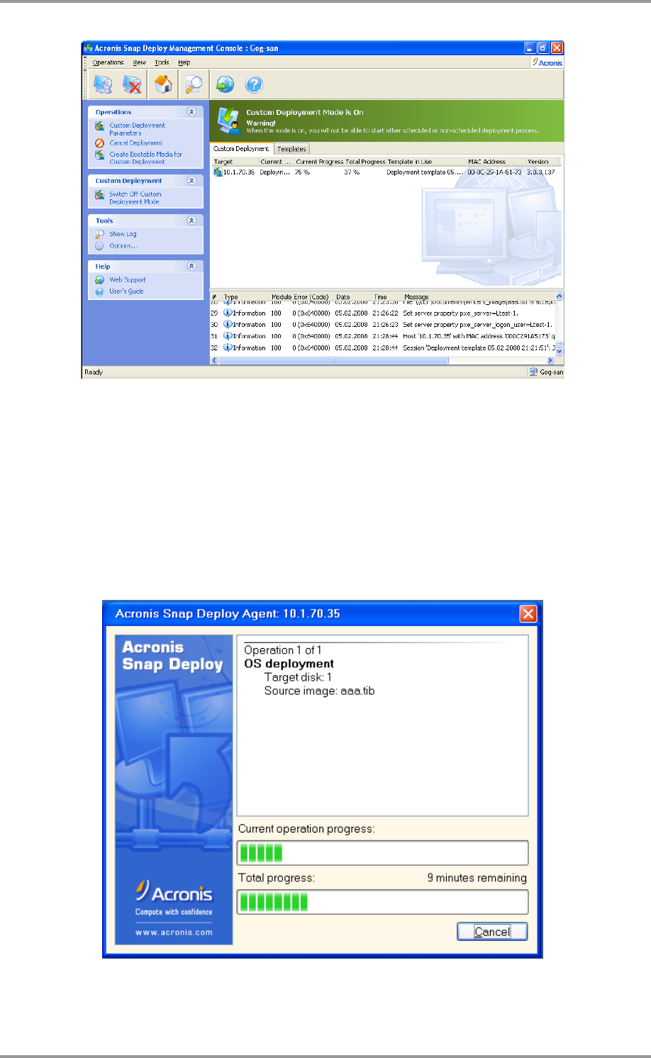 12. The Custom Deployment tab shows the status of deployment operations performed on users’