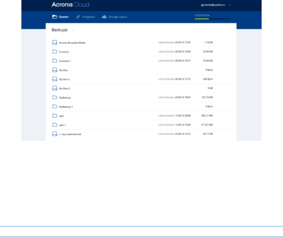 1. Suchen Sie in der Registerkarte Dateien der Acronis Cloud-Webapplikation die Datei/den Ordner