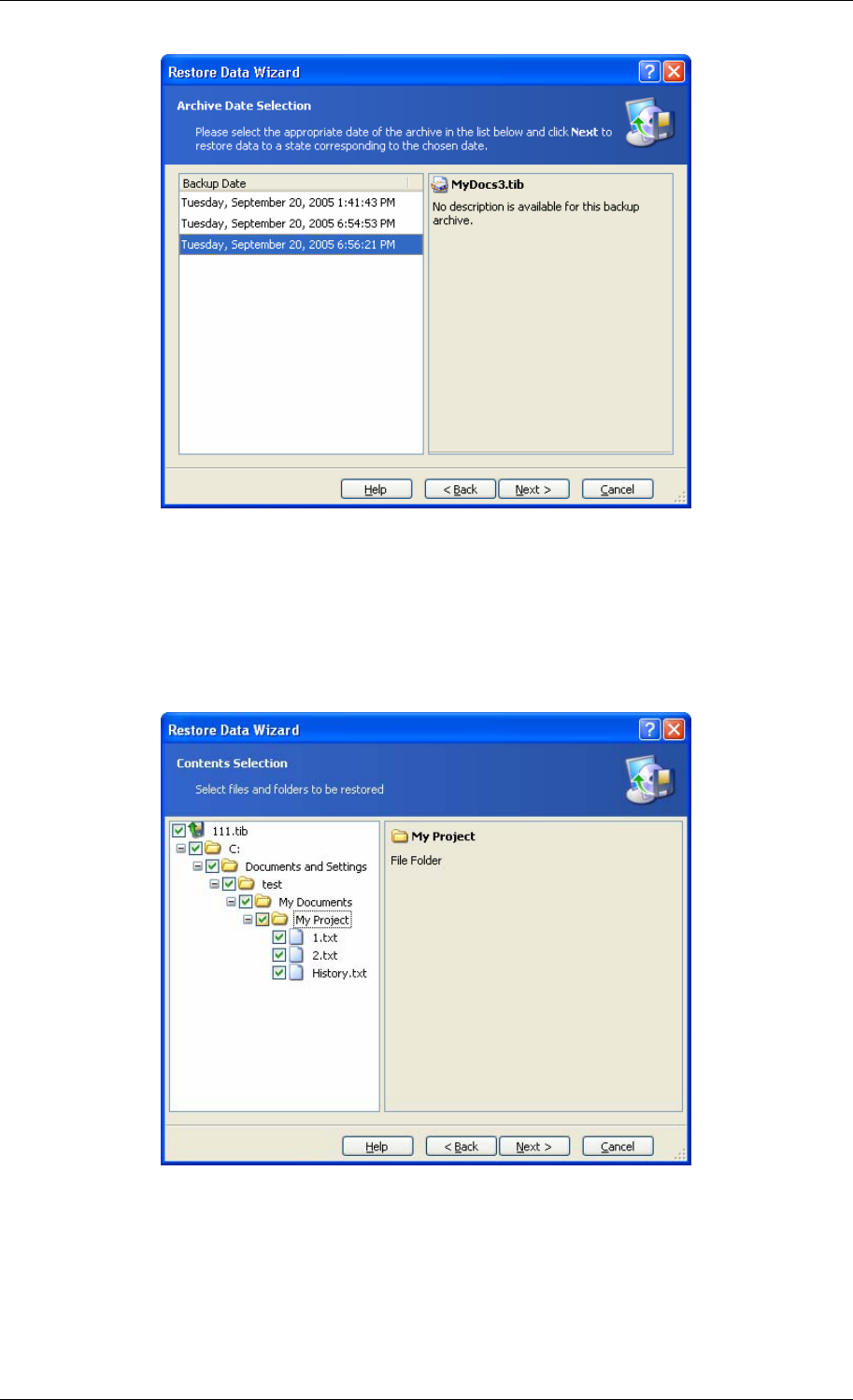 folder). You can restore data to their original location or choose another folder, if necessary.