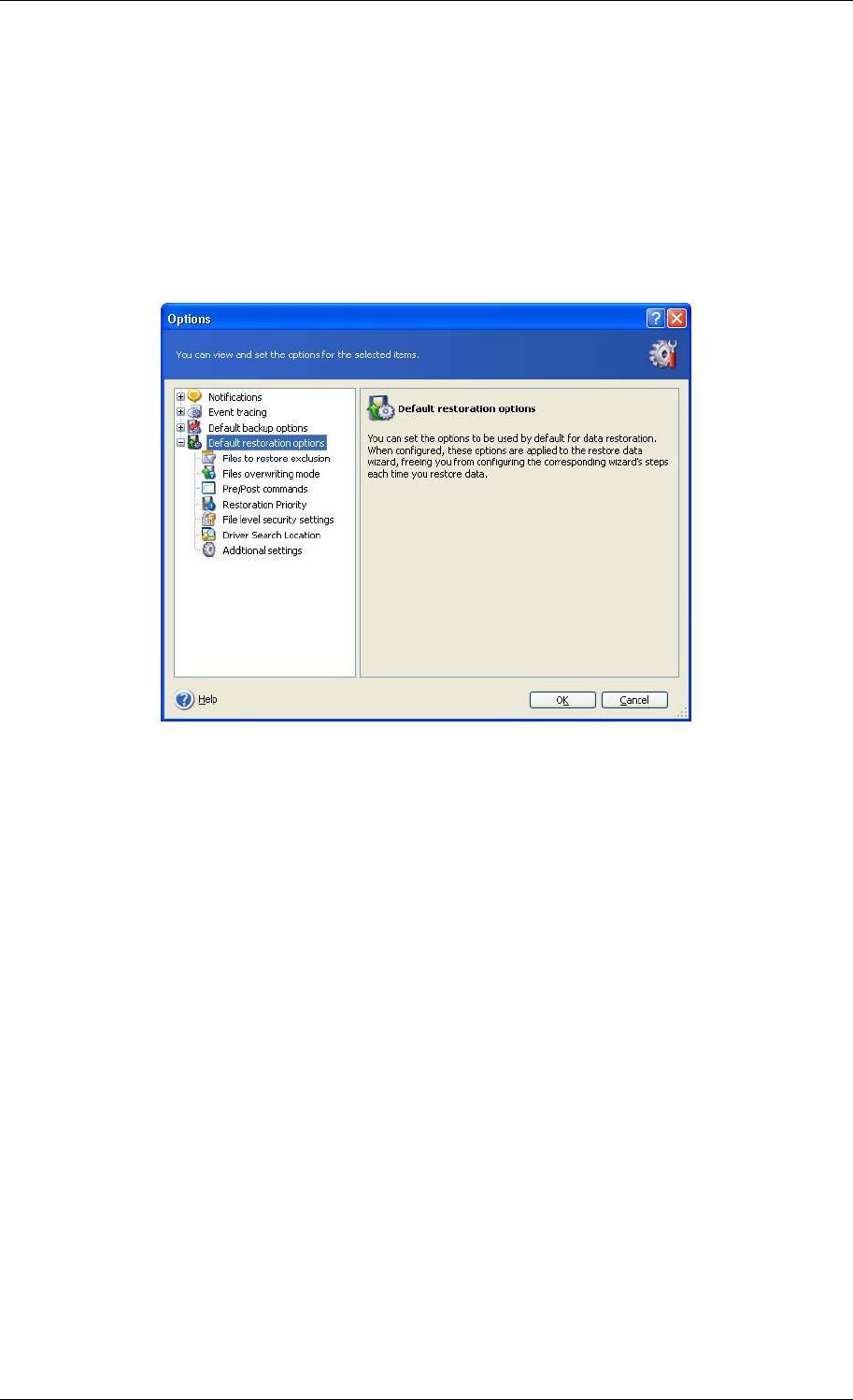 To view or edit the default restore options in Acronis True Image Enterprise Server local