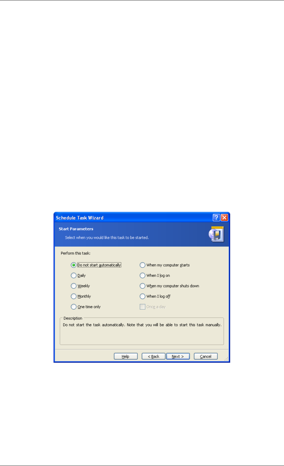 • Do not start automatically – the task will be saved, but not launched automatically.