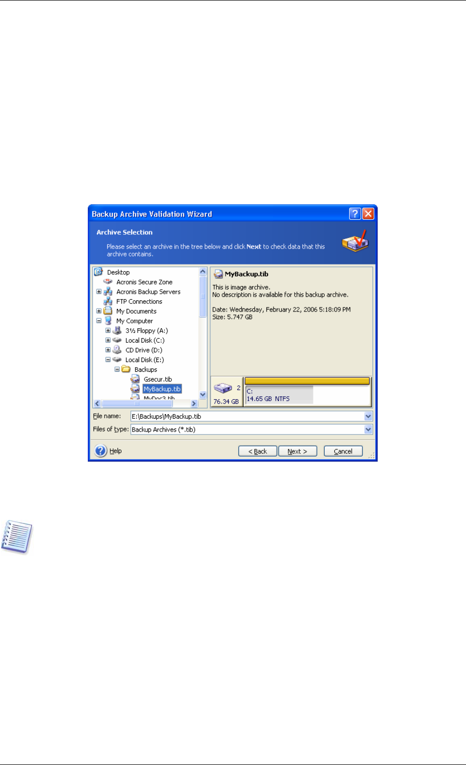 1. To invoke the Backup Archive Validation Wizard, select Validate Backup Archive in