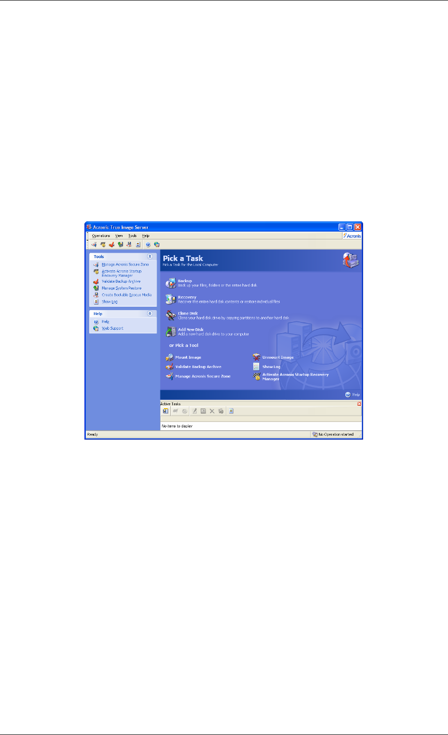 necessary operation or tool by clicking its icon in the main area or by selecting the same