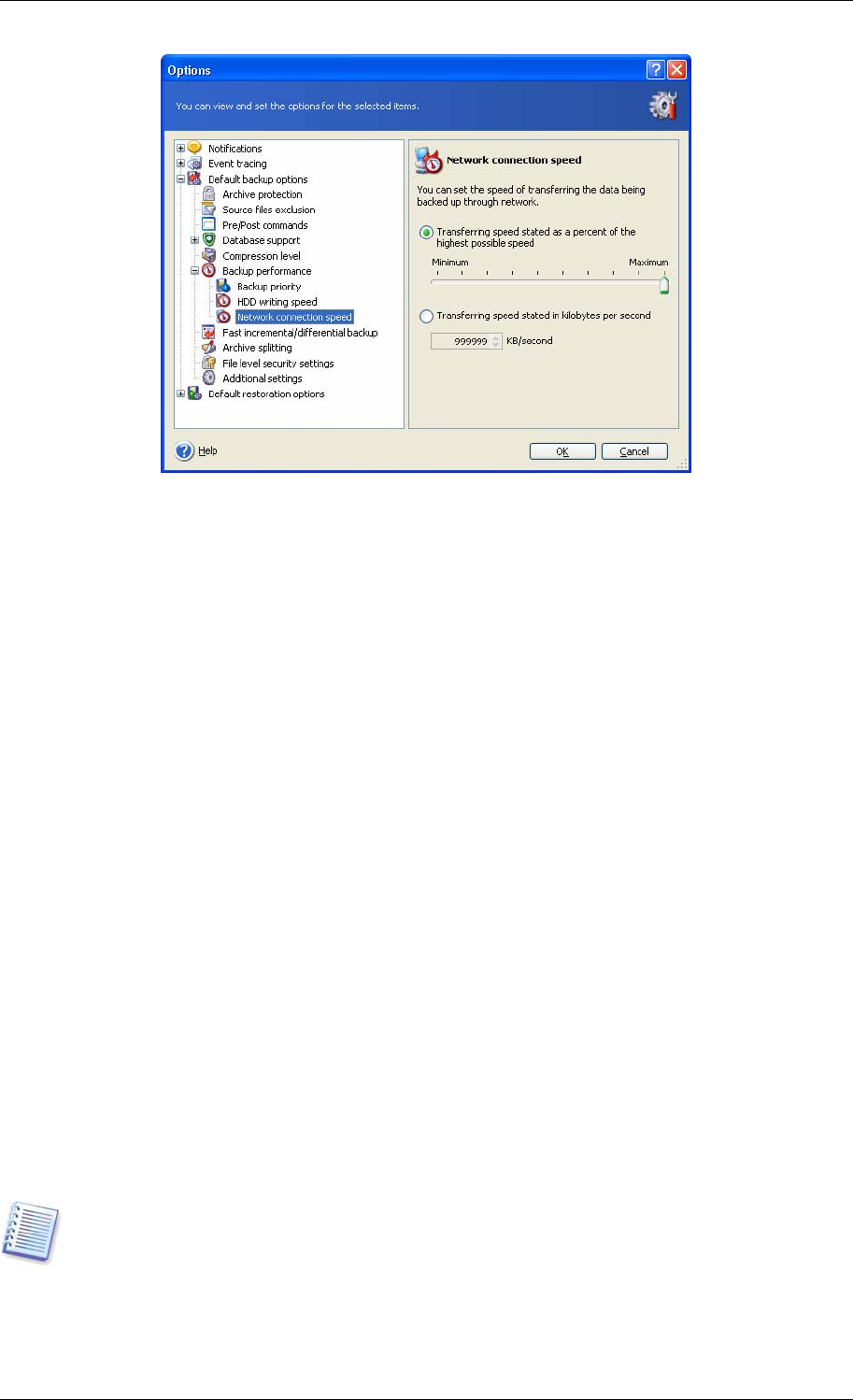 Acronis True Image Server for Windows. To set the desired data transfer speed, drag the