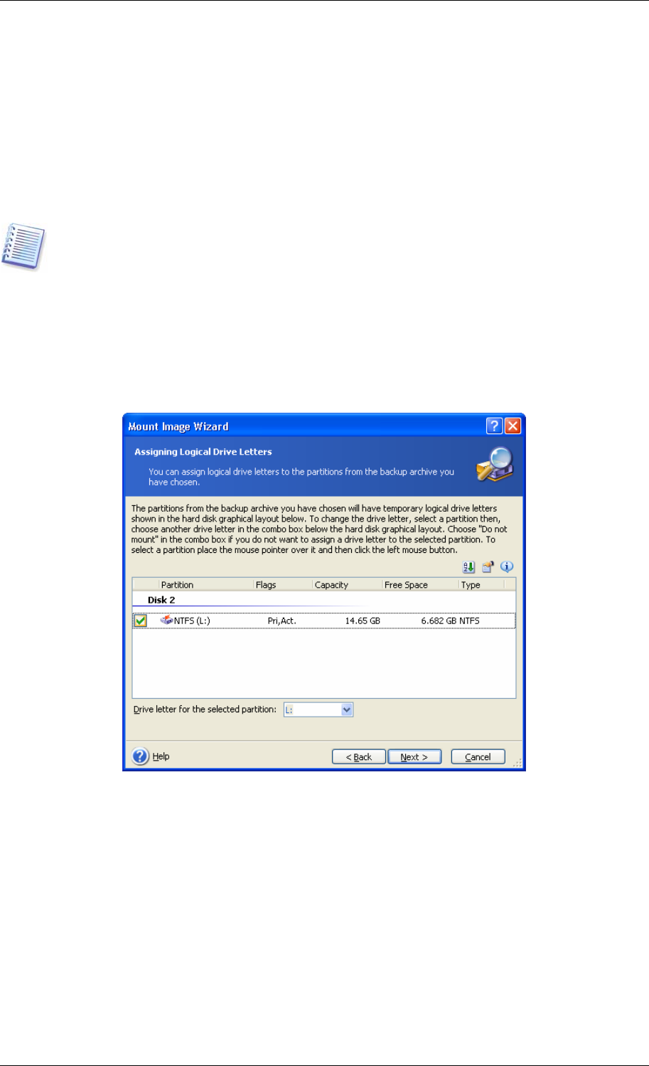 7. Select a partition to mount as a virtual disk. (Note that you cannot mount the entire disk.)