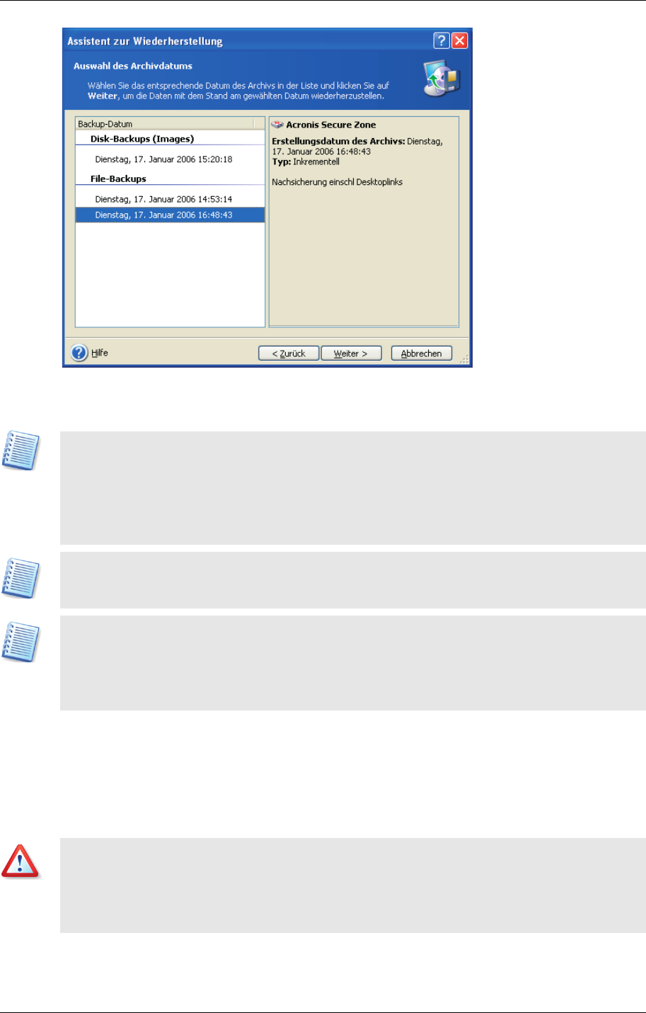 - 8. Acronis Secure Zone: Verwalten von Backups anhand der Archivnummern