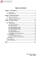 Table of Contents Chapter 1 Introduction............................................................. 4 1.1. Specifications ............................................................................................4 1.2. Package Contents......................................................................................6 Chapter 2 H/W Information...................................................... 7 2.1. 2.2. Mainboard illustration.....................................................................