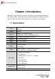 Table of Contents Chapter 1 Introduction............................................................. 4 1.1. Specifications ............................................................................................4 1.2. Package Contents......................................................................................6 Chapter 2 H/W Information...................................................... 7 2.1. 2.2. Mainboard illustration.....................................................................