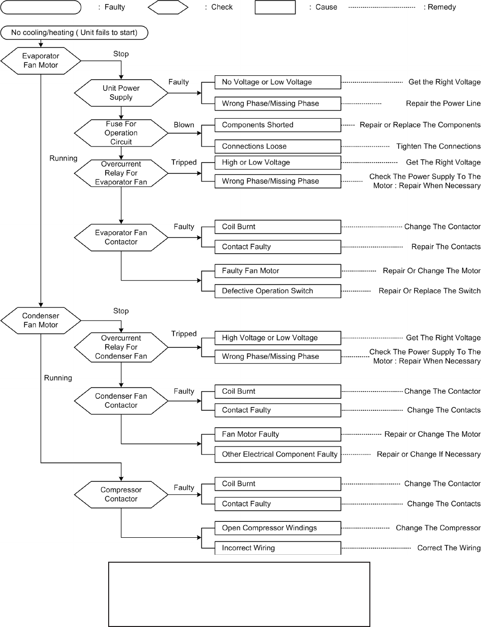 Generally, there are two kinds of problems, i.e. starting failure and insufficient cooling/heating. “Starting failure”