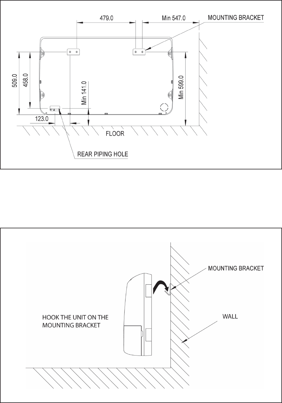 1. Refer to the dimension as illustrated when installing the mounting bracket.