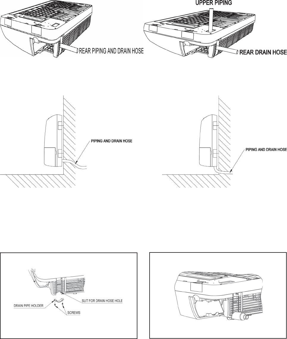 3. Place the drain hose on the v-shape area and secure it with drain pipe holder and 2 screws.