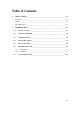 Table of Contents 0 PRECAUTIONS________________________________________________ 0-1 Trademarks ________________________________________________________________ 0-1 Liability ___________________________________________________________________ 0-1 FCC/CE Regulation __________________________________________________________ 0-1 1 INTRODUCTION ______________________________________________ 1-1 1.1 Package Contents _______________________________________________ 1-1 1.