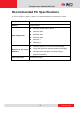Firmware User’s Manual V6.09.45 Recommended PC Specifications In order to configure or test the cameras, a PC with following basic specifications is needed: CPU Core 2 Duo 2.13 GHz or above Memory 2 GB or above Operating System Browser for Accessing Firmware Windows XP with SP2 or above. Windows 2003 Windows Vista Windows 2008 Windows 7 Windows 8 Internet Explorer 8.