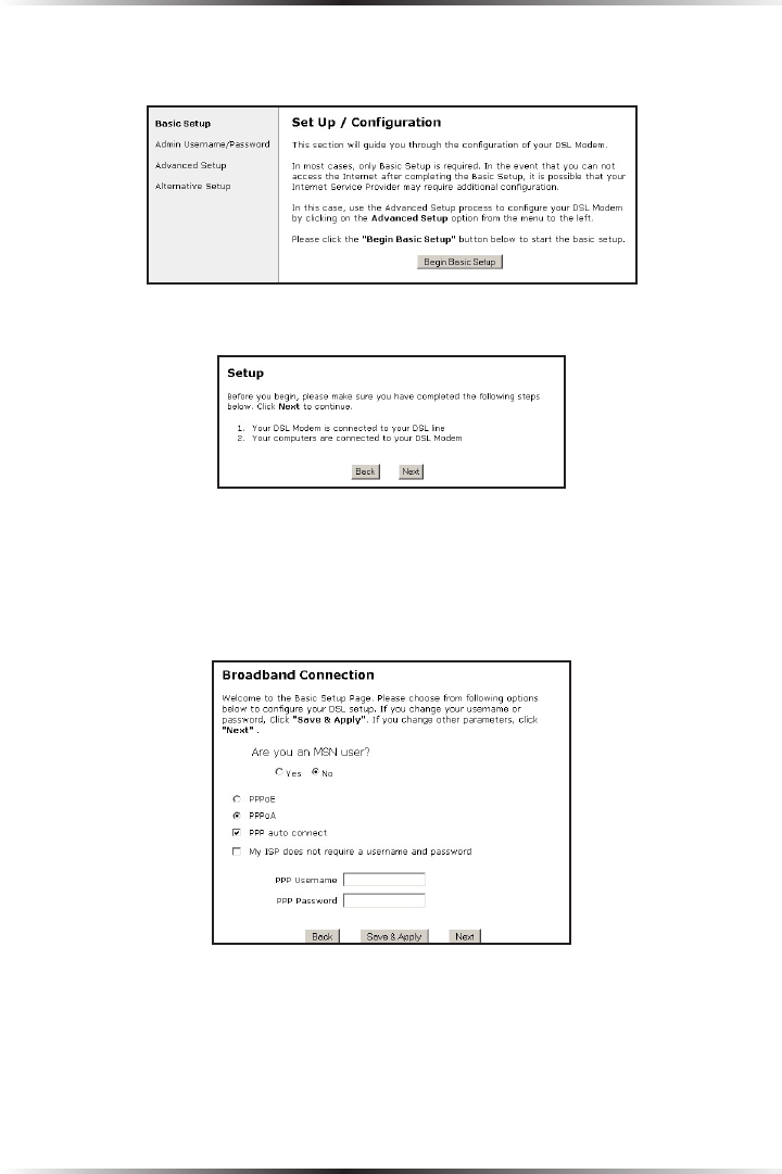 vided by the ISP by clicking in the circle next to PPPoA or PPPoE. If unsure