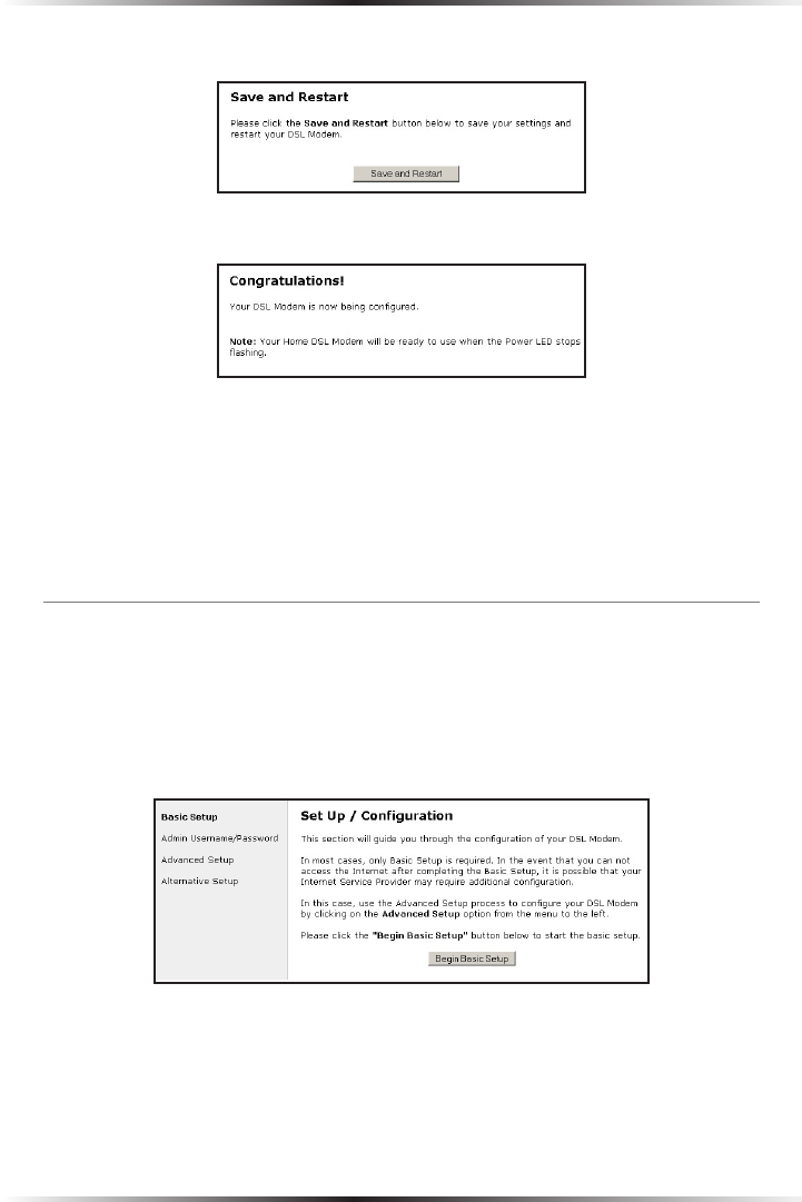 7. The “Congratulations” screen appears. The Modem is successfully configured.