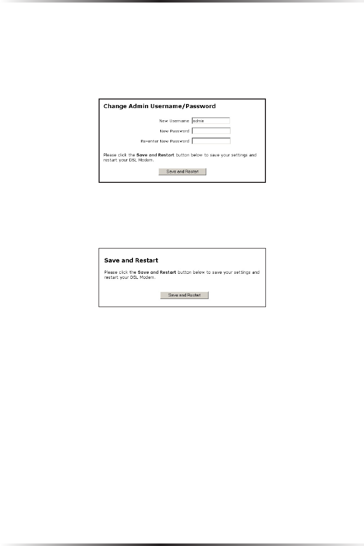 13. The “Change Admin Username/Password” screen appears. Enter a new