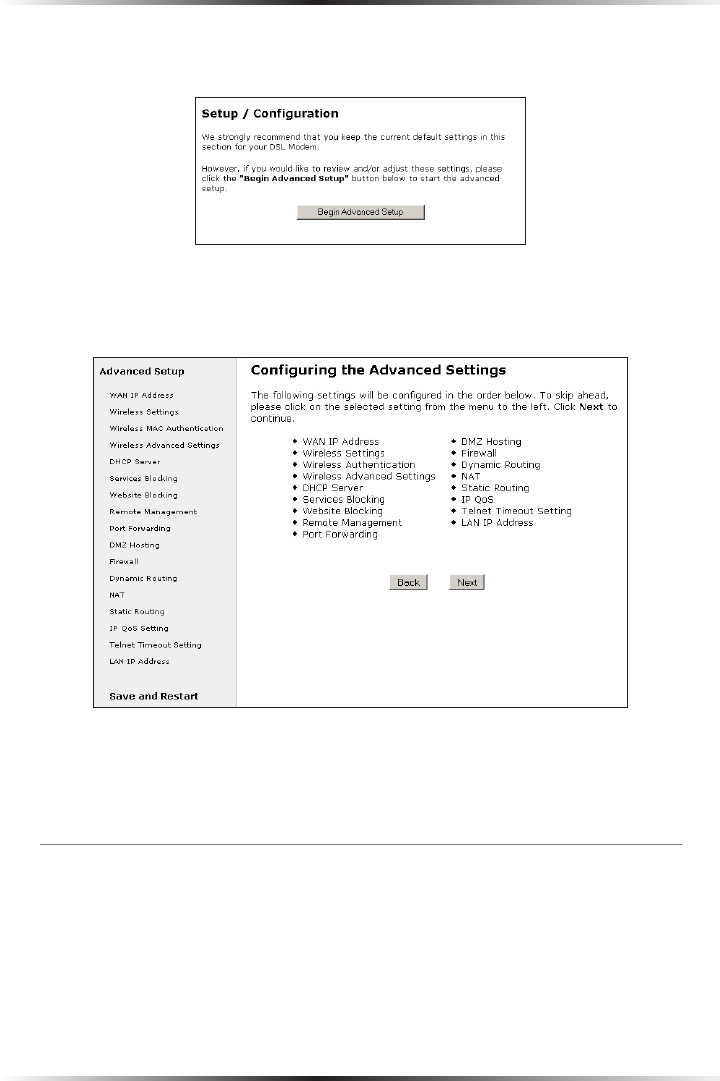 on the Modem, click Begin Advanced Setup.