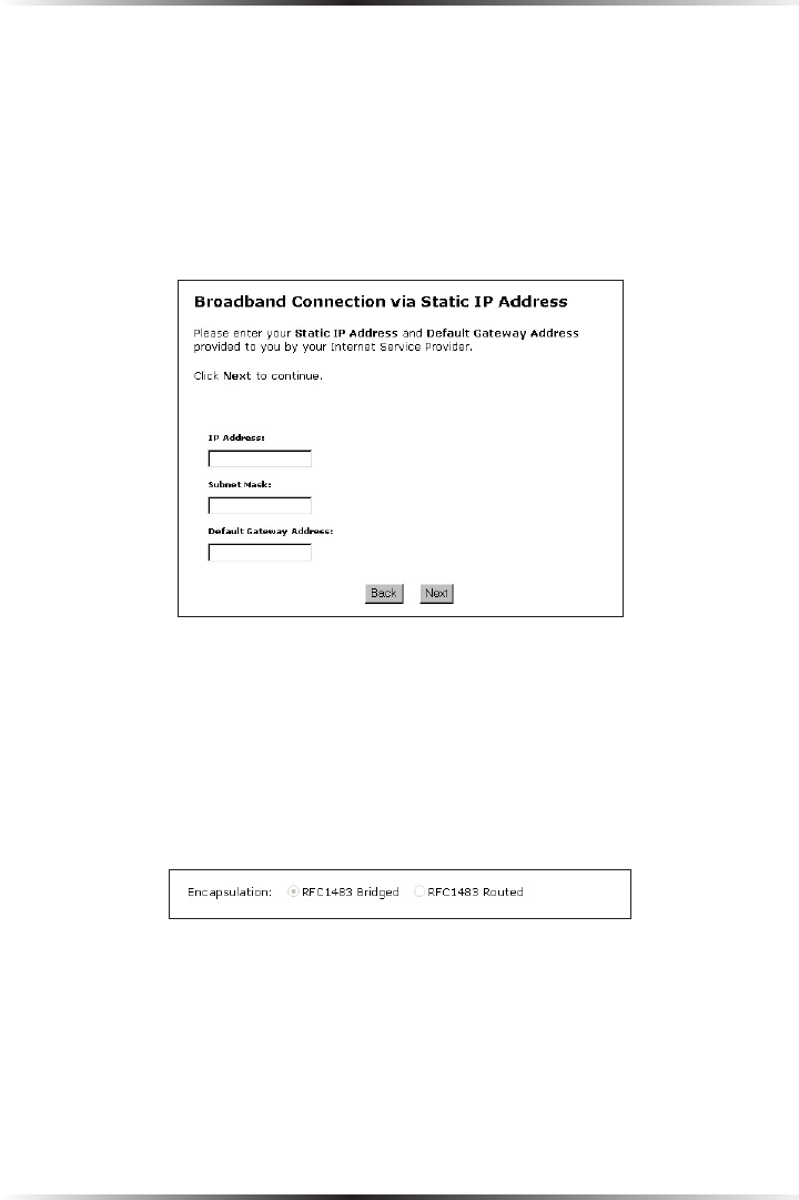 static IP address, select the appropriate encapsulation option used by the ISP (RFC