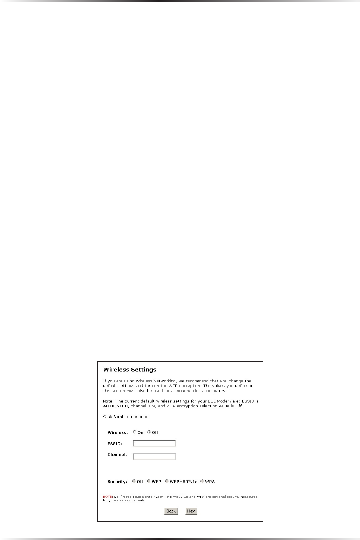 Selecting Wireless Settings in the “Advanced Settings” screen generates the