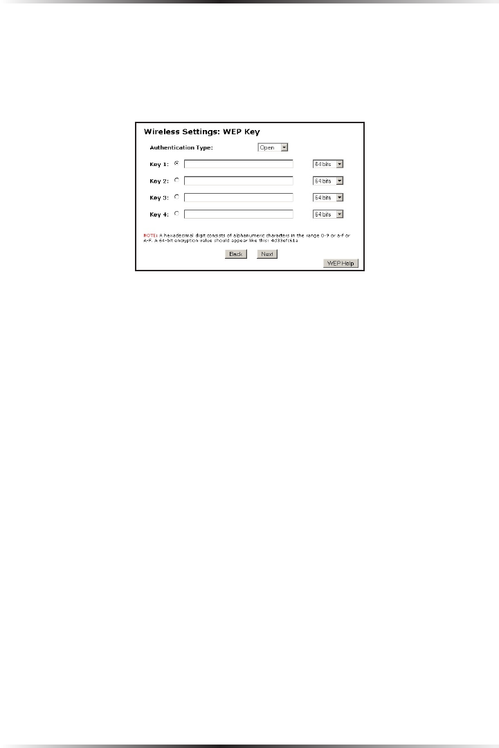 Activating WEP and clicking Next in the Wireless Settings screen generates the