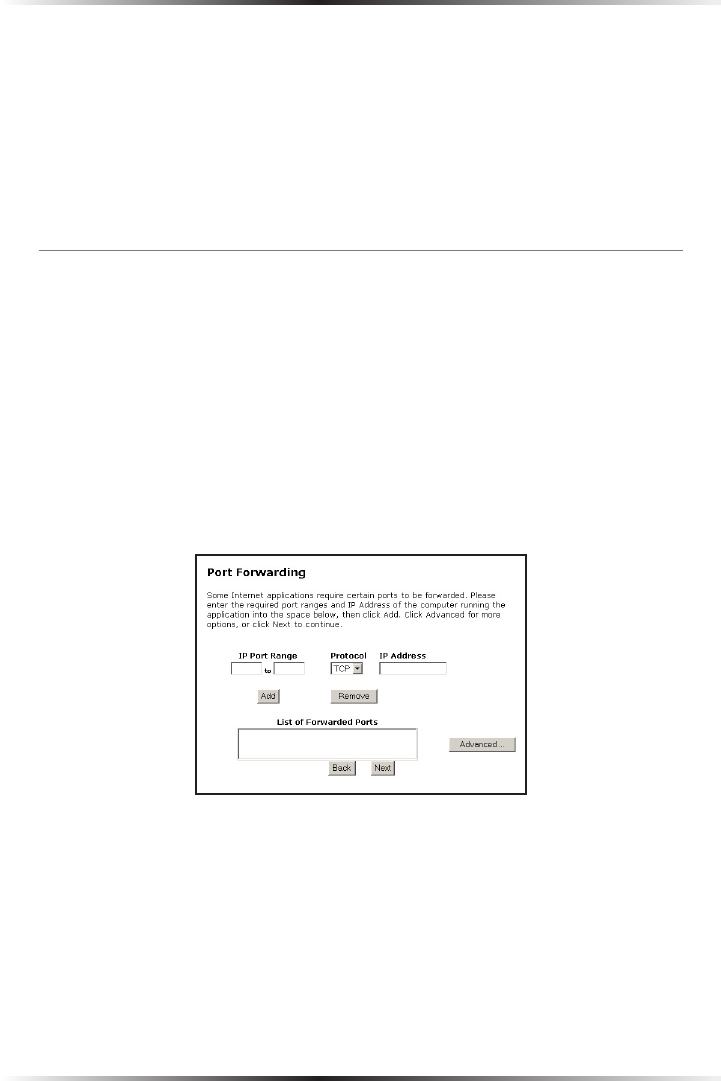 Selecting Port Forwarding in the “Advanced Settings” screen generates the “Port