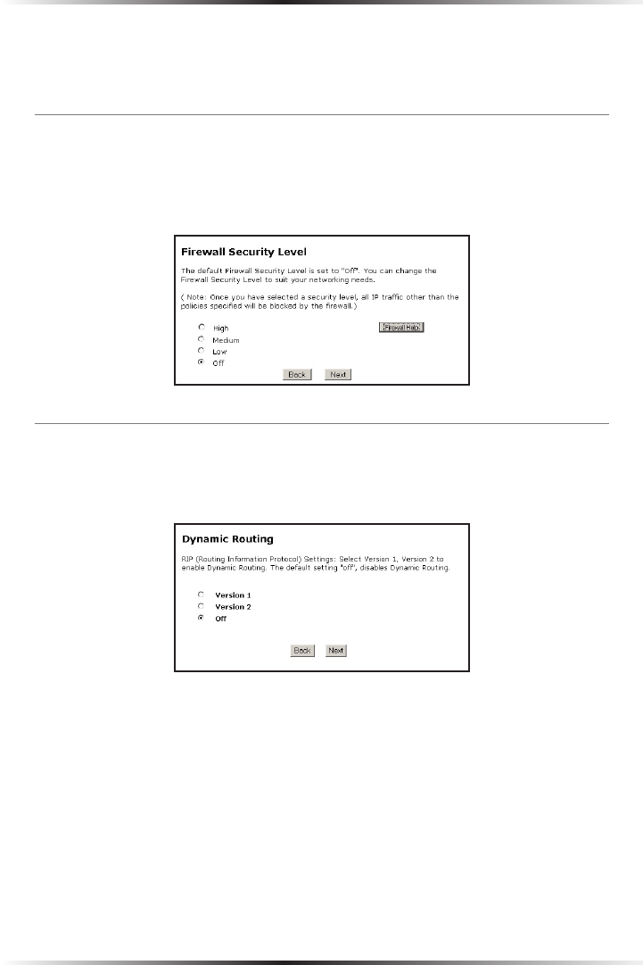Selecting Firewall in the “Advanced Settings” screen generates the “Firewall