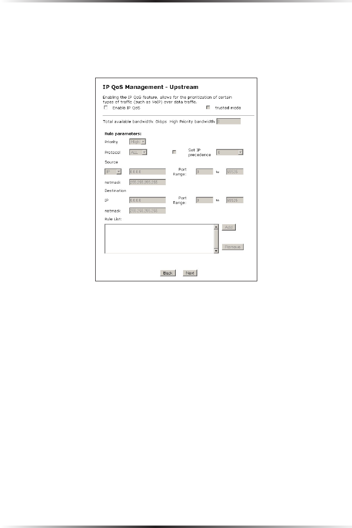 Selecting IP QoS Setting in the “Advanced Settings” screen generates the “IP QoS
