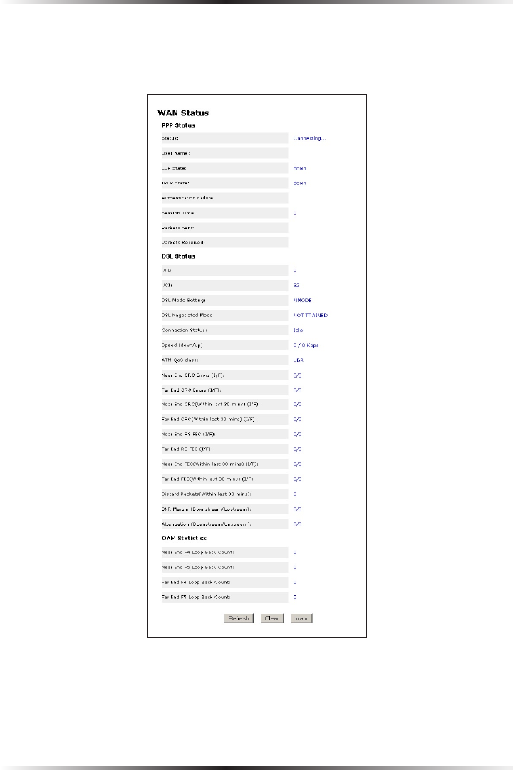 Selecting WAN Status generates the WAN Status screen. This screen displays on