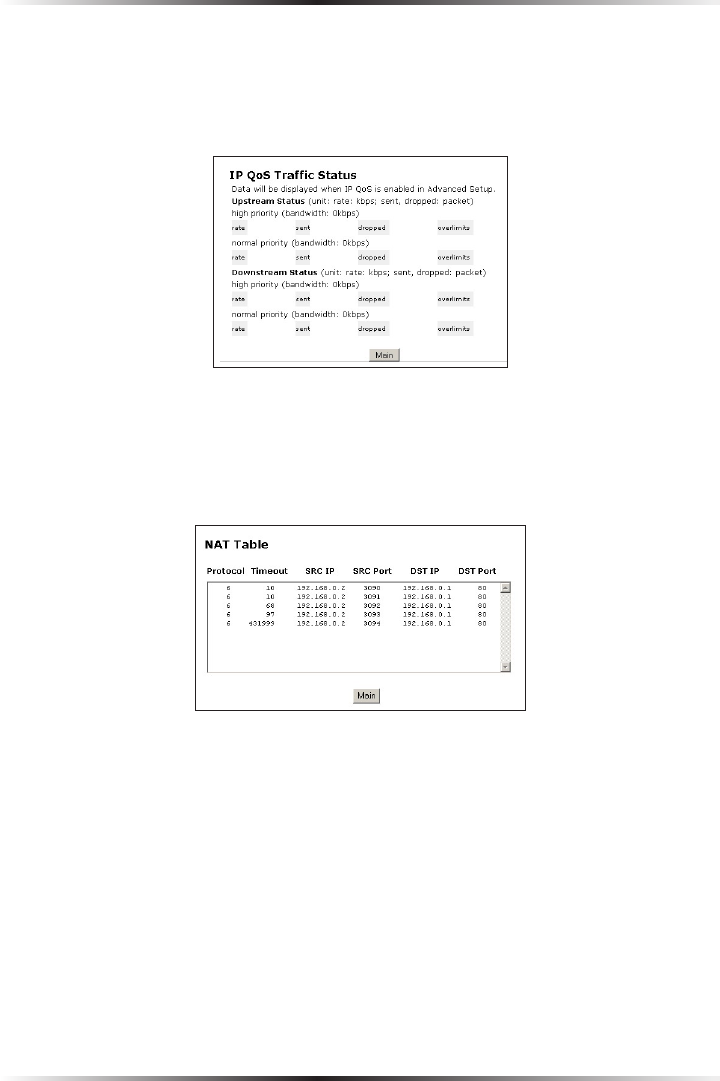 Selecting QoS Status generates the “IP QoS Traffic Status” screen. This screen