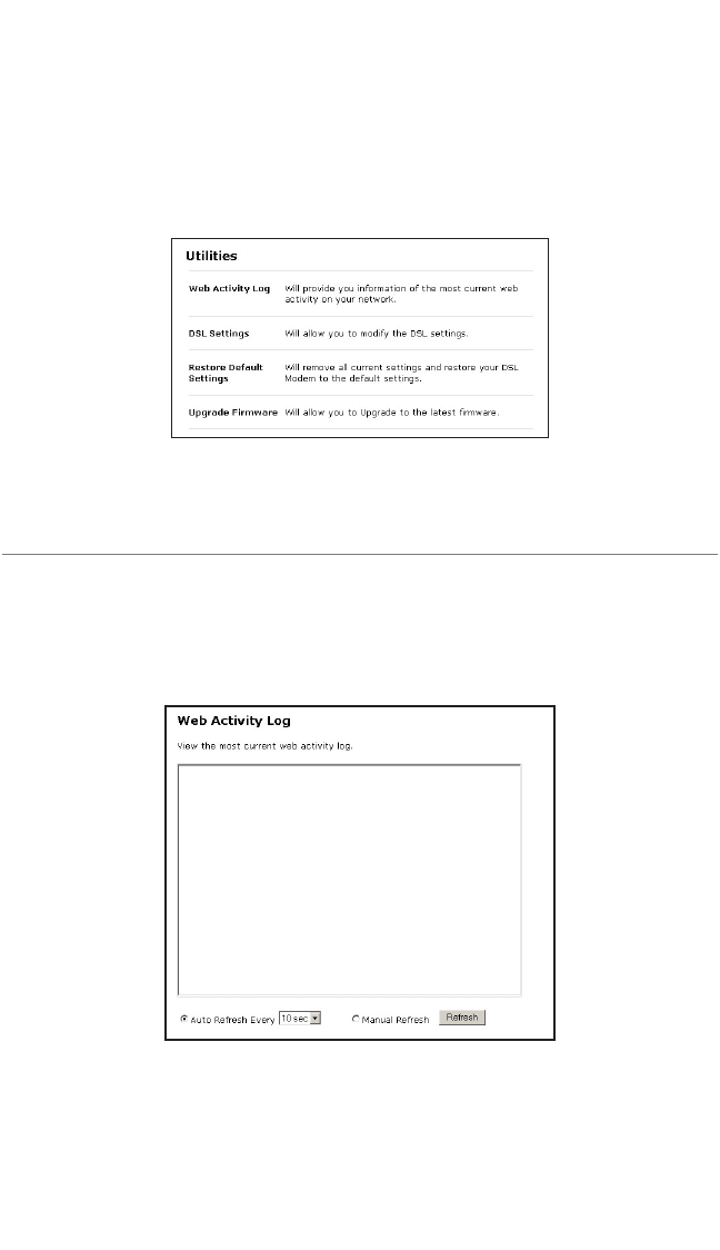 on the Modem’s network has visited. To access the Web Activity Log, select Web