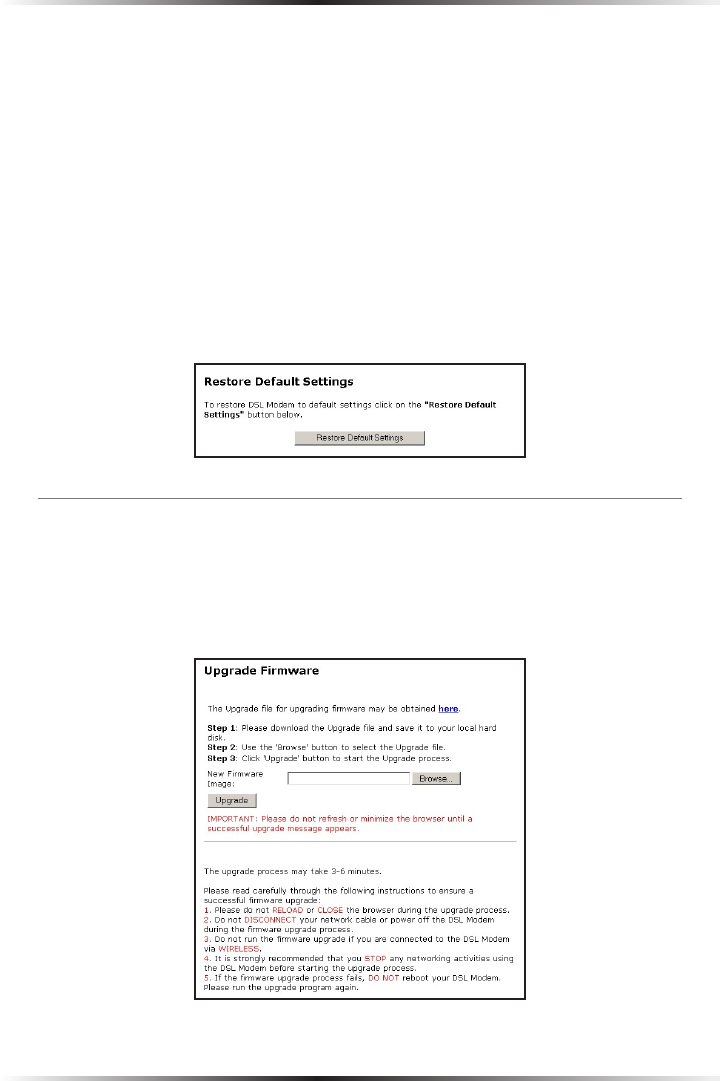 Restore Default Settings. Any changes made to the Modem’s settings will be lost