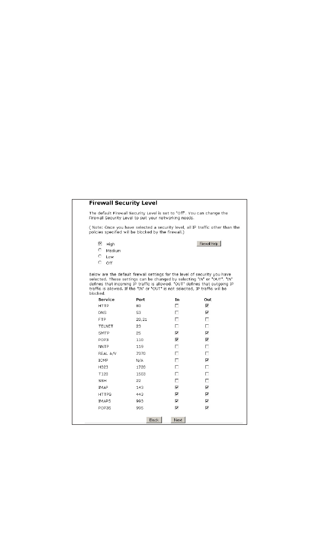 For example, if “High” is selected in the “Firewall Security Level” screen (as shown