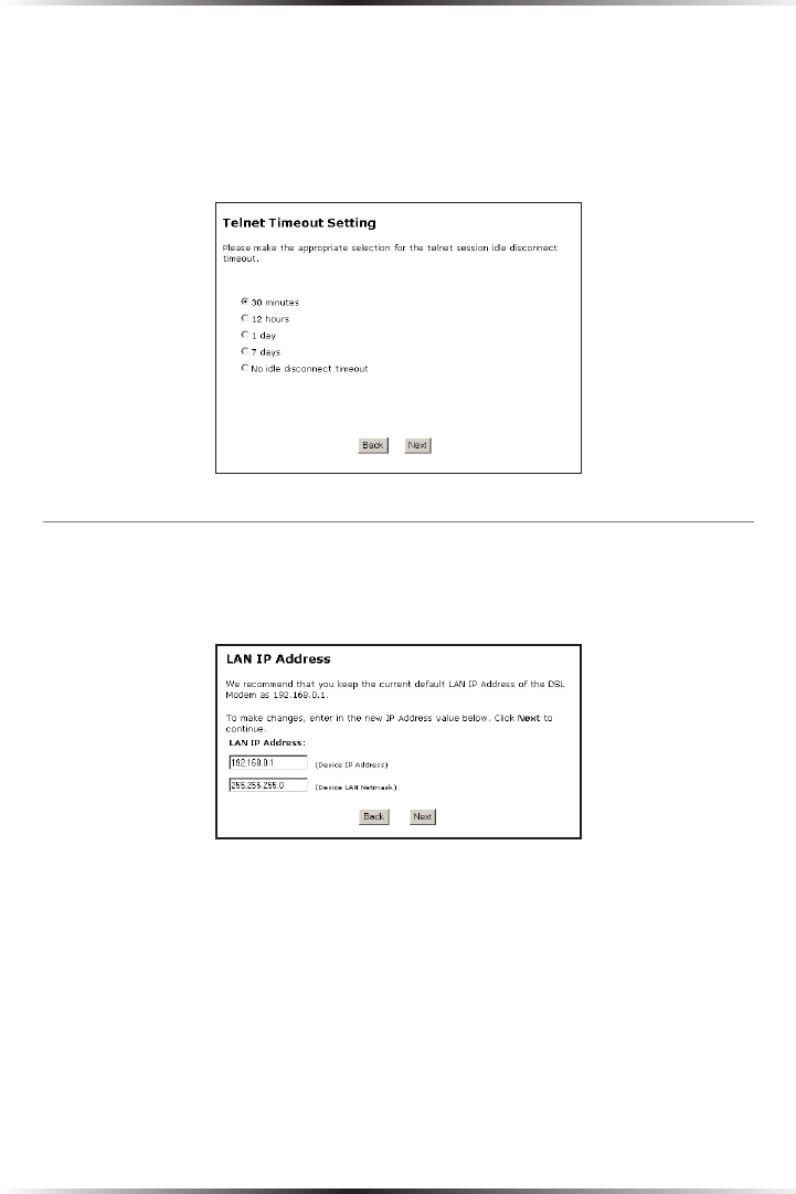 the “Telnet Timeout Setting” screen. In this screen, select the amount of idle time