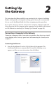 Setting Up a Network 7 Other computers can be connected to the Gateway to form a network, which allows the computers to transfer files, communicate with each other, and share an Internet connection. The networked computers can be connected to the Gateway in three ways: Ethernet, USB, or wirelessly. Ethernet ☞ Note: If the first computer connected to the Gateway is connected via Ethernet, no other computers can be connected in this manner.
