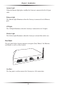 Chapter 1 Introduction Internet Light When the Internet light glows steadily, the Gateway is connected to the DSL provider. Ethernet Light The Ethernet light illuminates when the Gateway is connected via its Ethernet port. USB Light The USB light illuminates when the Gateway is connected via its USB port. Wireless Light The Wireless light illuminates when the Gateway is activated for wireless use.