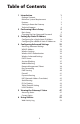 Table of Contents 1 Introduction 1 Package Contents Minimum System Requirements Features Getting to Know the Gateway Technical Support 2 Performing a Basic Setup Basic Setup Changing the User Name and Password 3 Setting Up Static IP Address Configuring for a Single Static IP Address Configuring for a Block of Static IP Addresses 4 Configuring Advanced Settings Accessing Advanced Settings WAN IP Address Wireless Settings Wireless MAC Authentication Wireless Advanced Settings DHCP Server Services Blockin