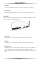 Chapter 1 Introduction USB Light The USB light illuminates when the Gateway is connected via its USB port. Wireless Light The Wireless light illuminates when the Gateway is activated for wireless use. Rear Panel The rear panel of the Gateway contains seven ports (Ethernet [4], Phone, USB, and Power), as well as Reset and Power switches. Phone Port The Phone port is used to connect the Gateway to a DSL connection. USB Port The USB port is used to connect a computer to the Gateway via USB cable.