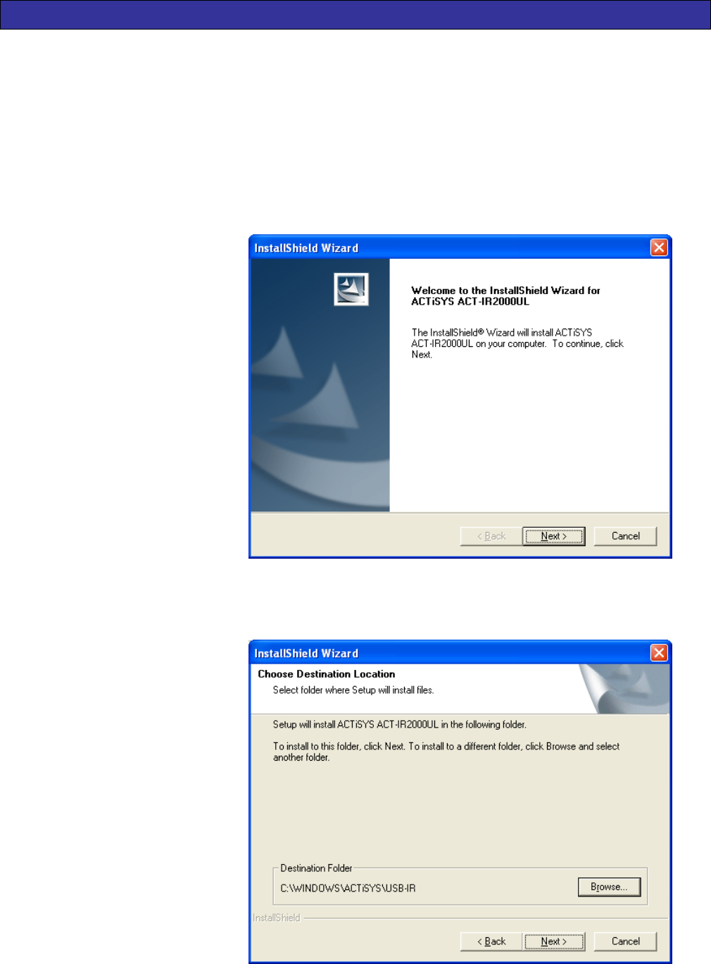 remove the driver and follow the “ACTiSYS ACT-IR2000UL Series Driver Installation for Windows XP” to