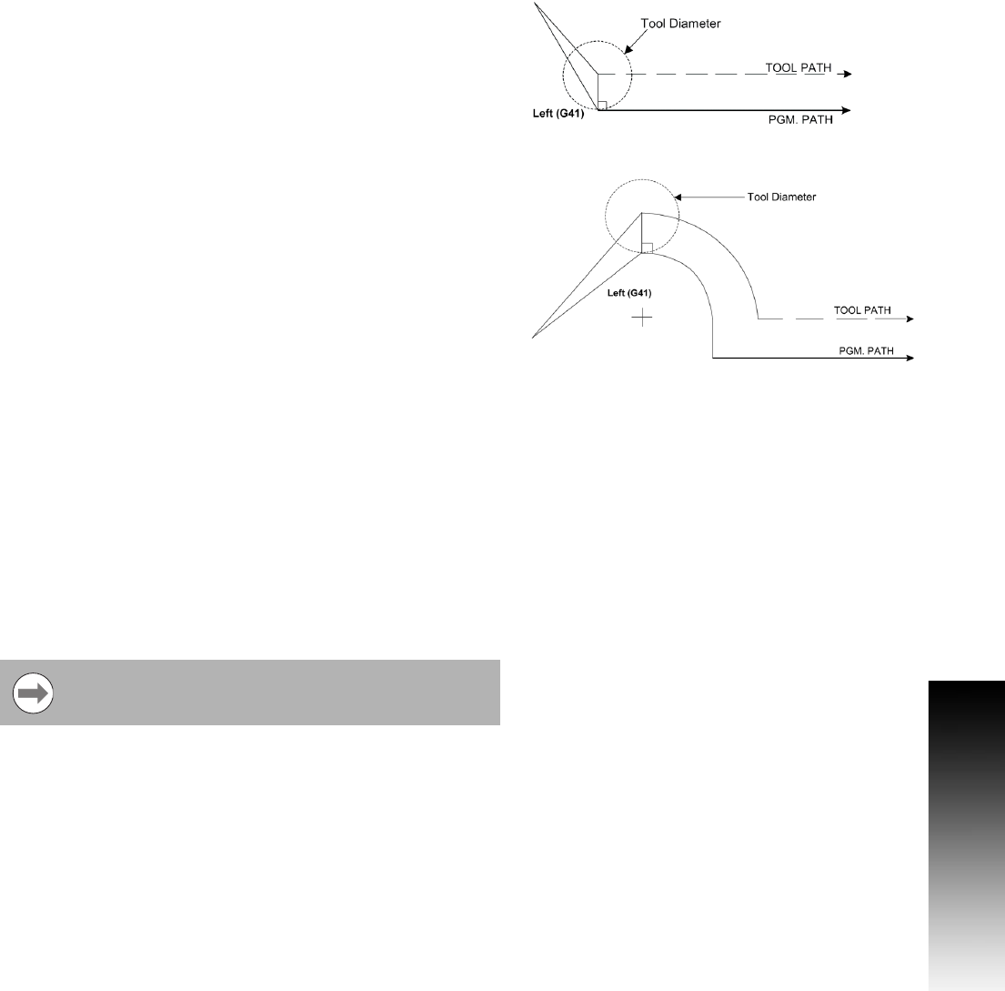 the startup block Compensation LEFT (G41), or Compensation RIGHT
