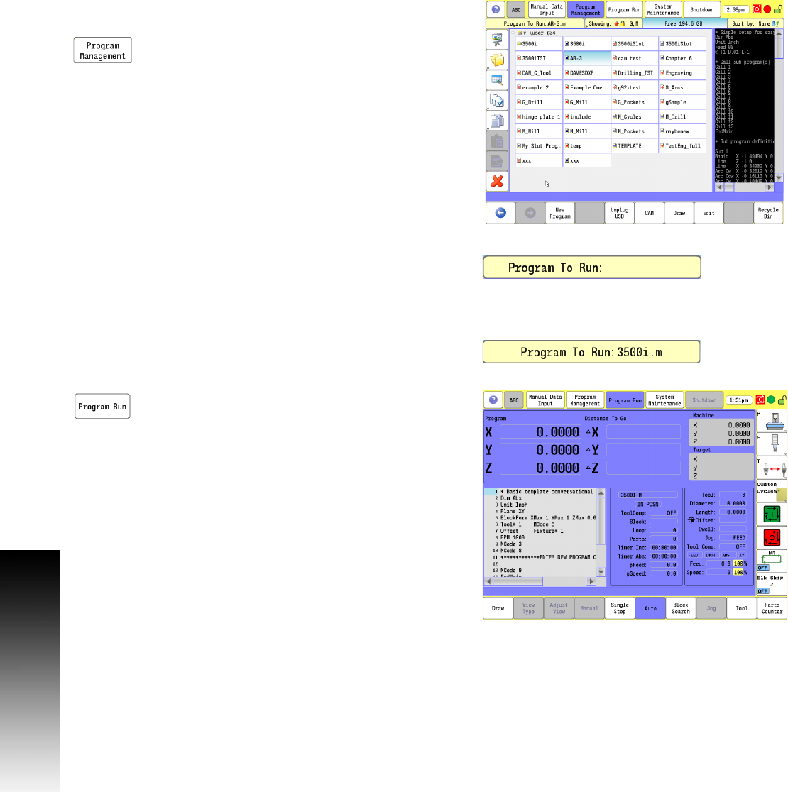 The CNC loads the program, and is ready to run (refer to Chapter 9).