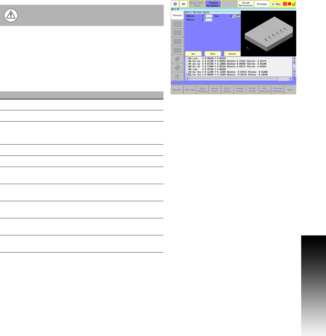 Use the automatic hole pattern cycle to program partial or full