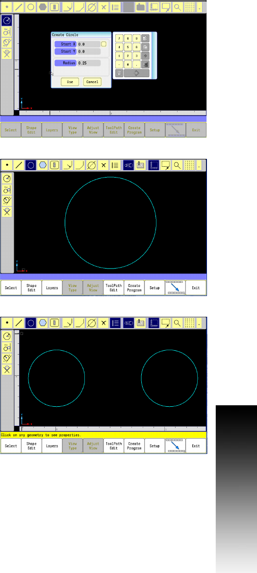 geometry of a .500” circle located at X 1.0, and Y 0.0 have now been
